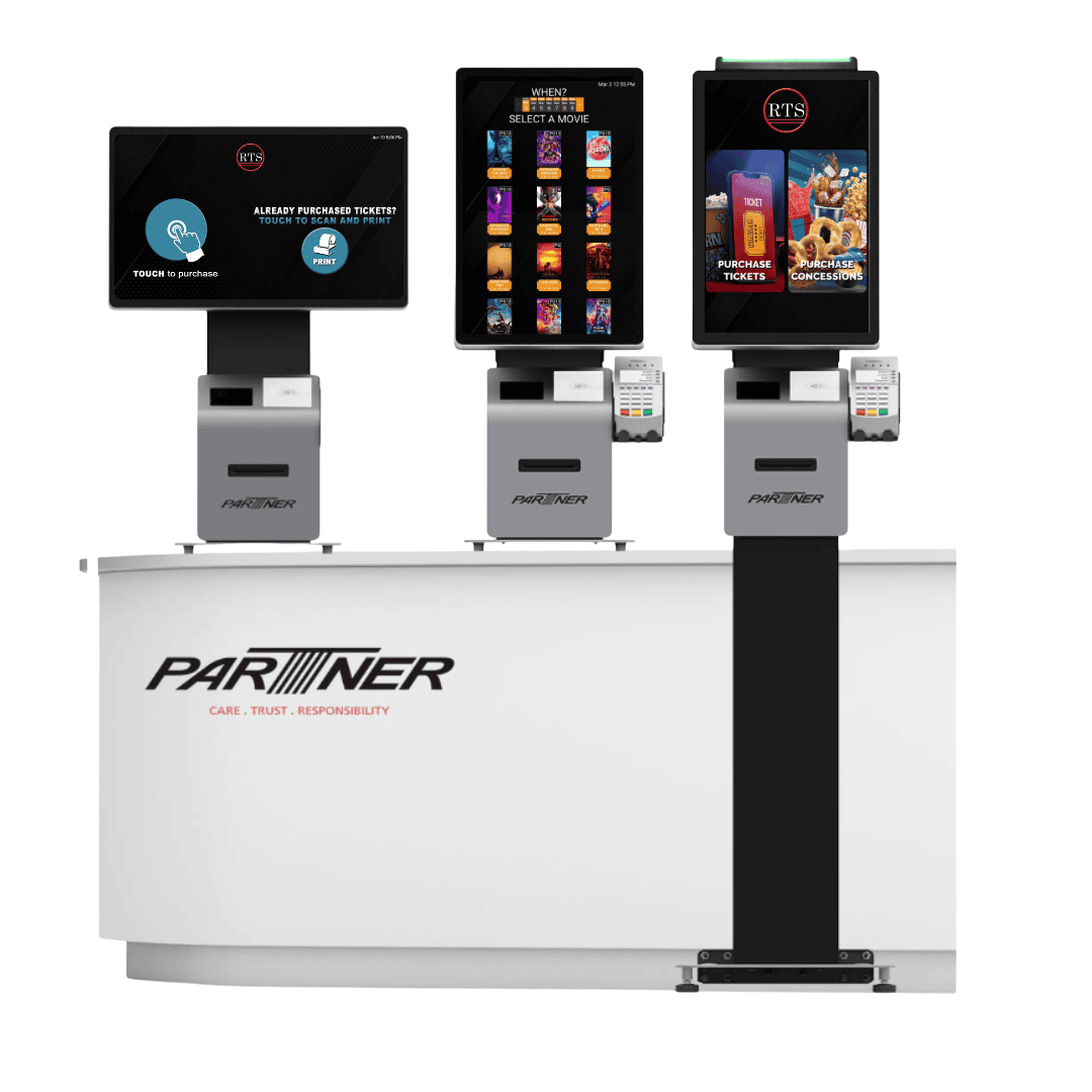 RTS Kiosks provide a self-service solution that enhances customer convenience and reduces wait times. Patrons can purchase tickets, pick up pre-purchased tickets, and order concessions directly from the user-friendly kiosk interface, allowing for quick and efficient service. With support for food and beverage purchases, gift card reloads, and customizable branding, RTS Kiosks empower customers to complete transactions independently, freeing up staff to focus on other areas of service.